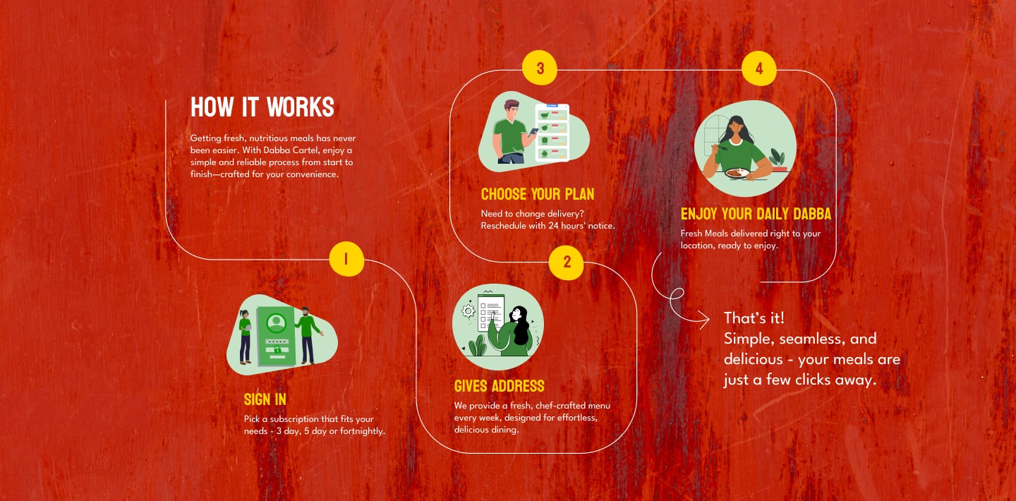We’re here to help! Whether you have questions about our meal plans, delivery options, or anything else, feel free to reach out. Our team is ready to make your experience with Dabba Cartel as seamless as possible.