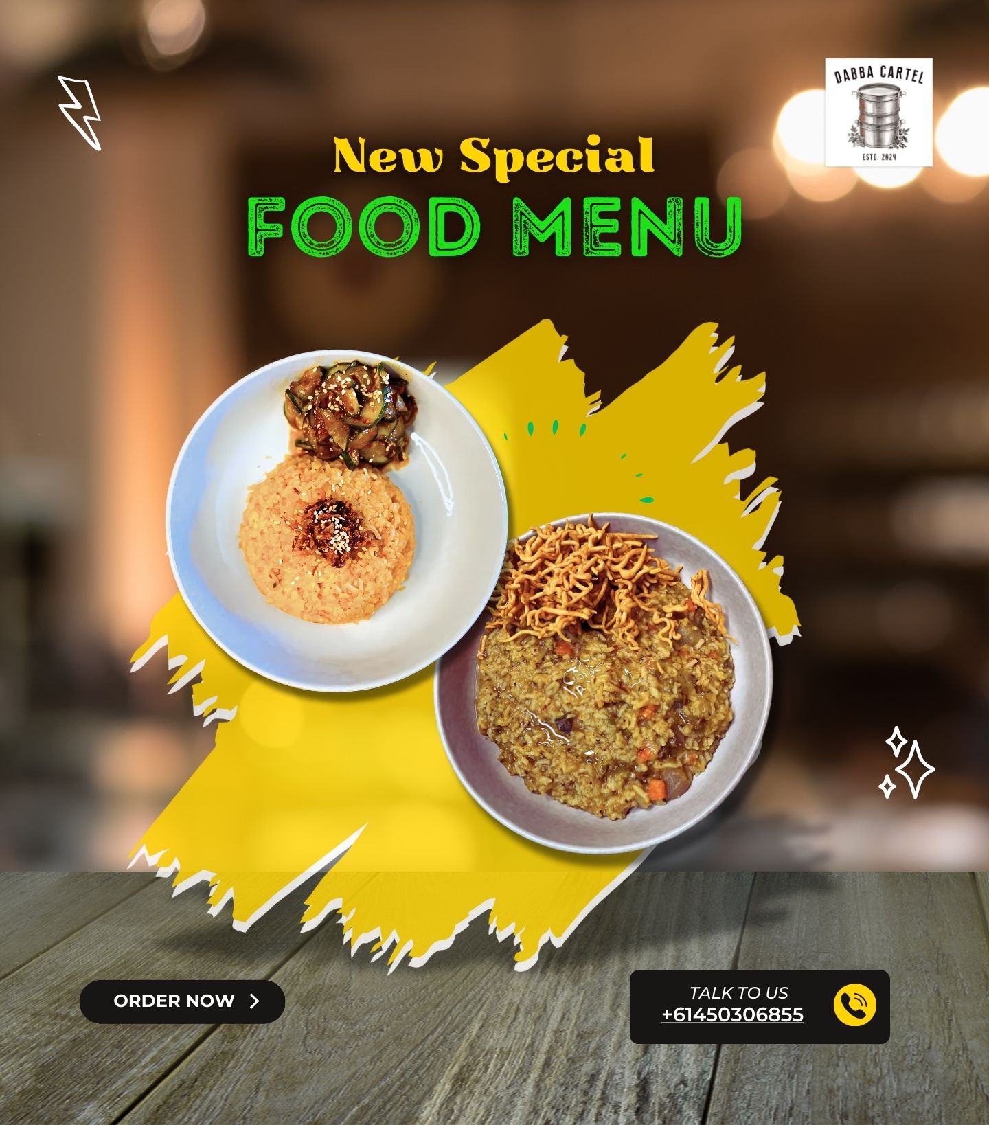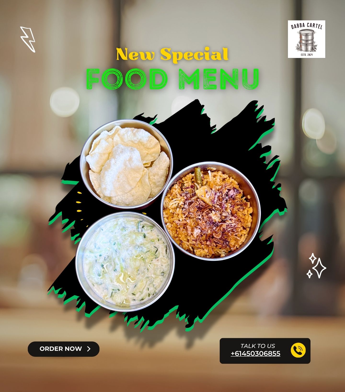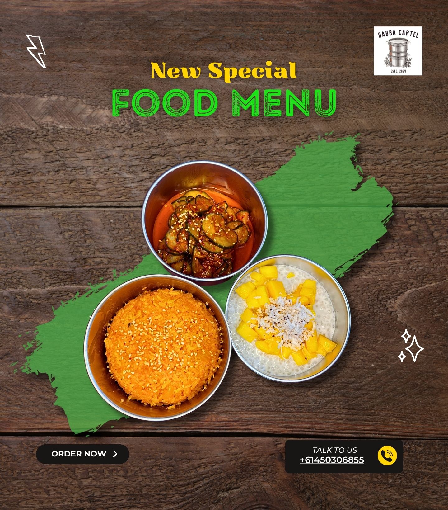Delivered in reusable dabbas