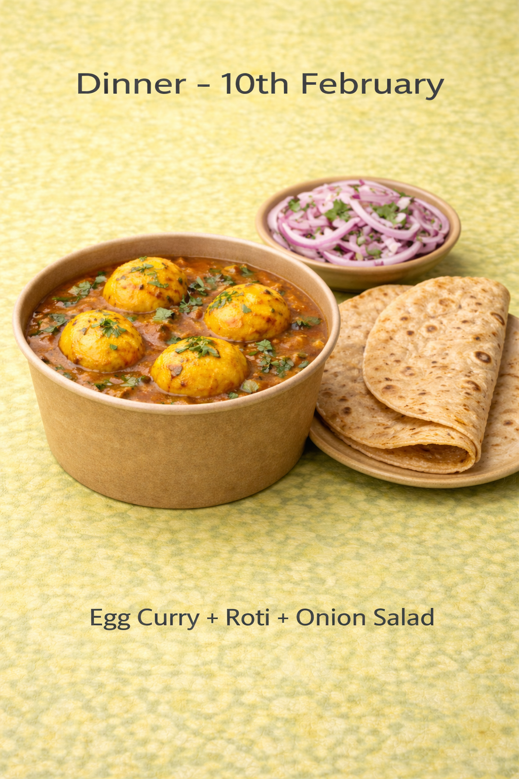 Egg Curry with Roti and Onion Salad